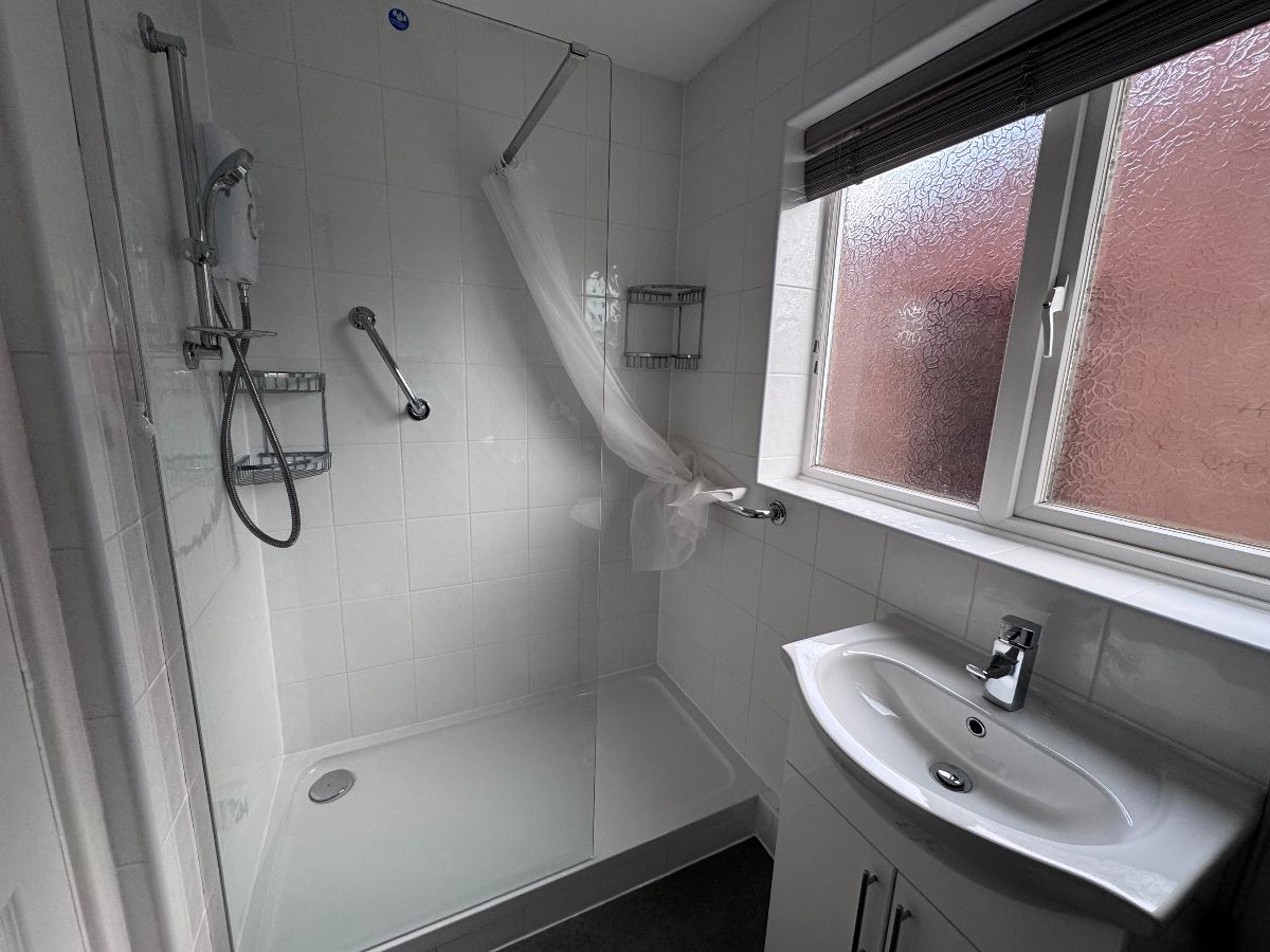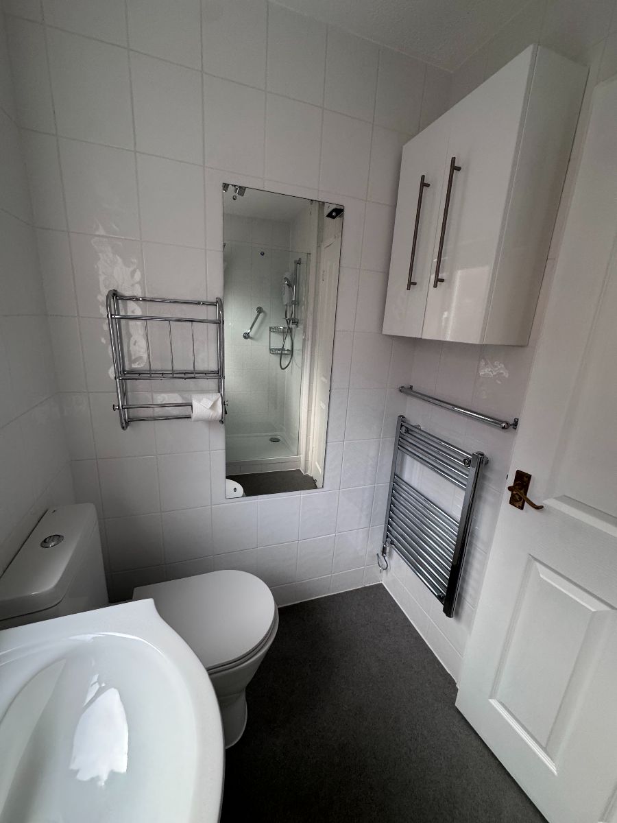 Shower Room, WC and Hand Basin set to Vanity Unit, Heated Towel Rail
