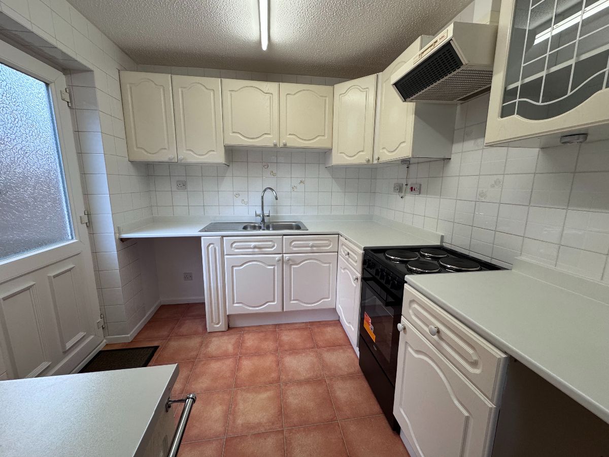Kitchen, with freestanding Cooker (New) and door to rear garden