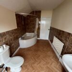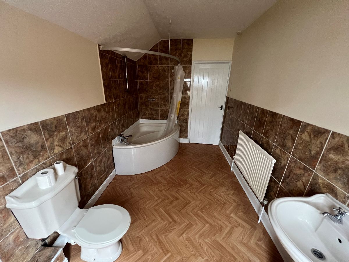Bathroom: Fitted with a corner bath with shower over and WC and Hand Basin and window to rear
