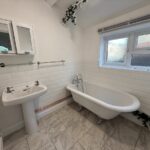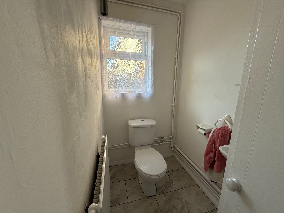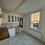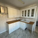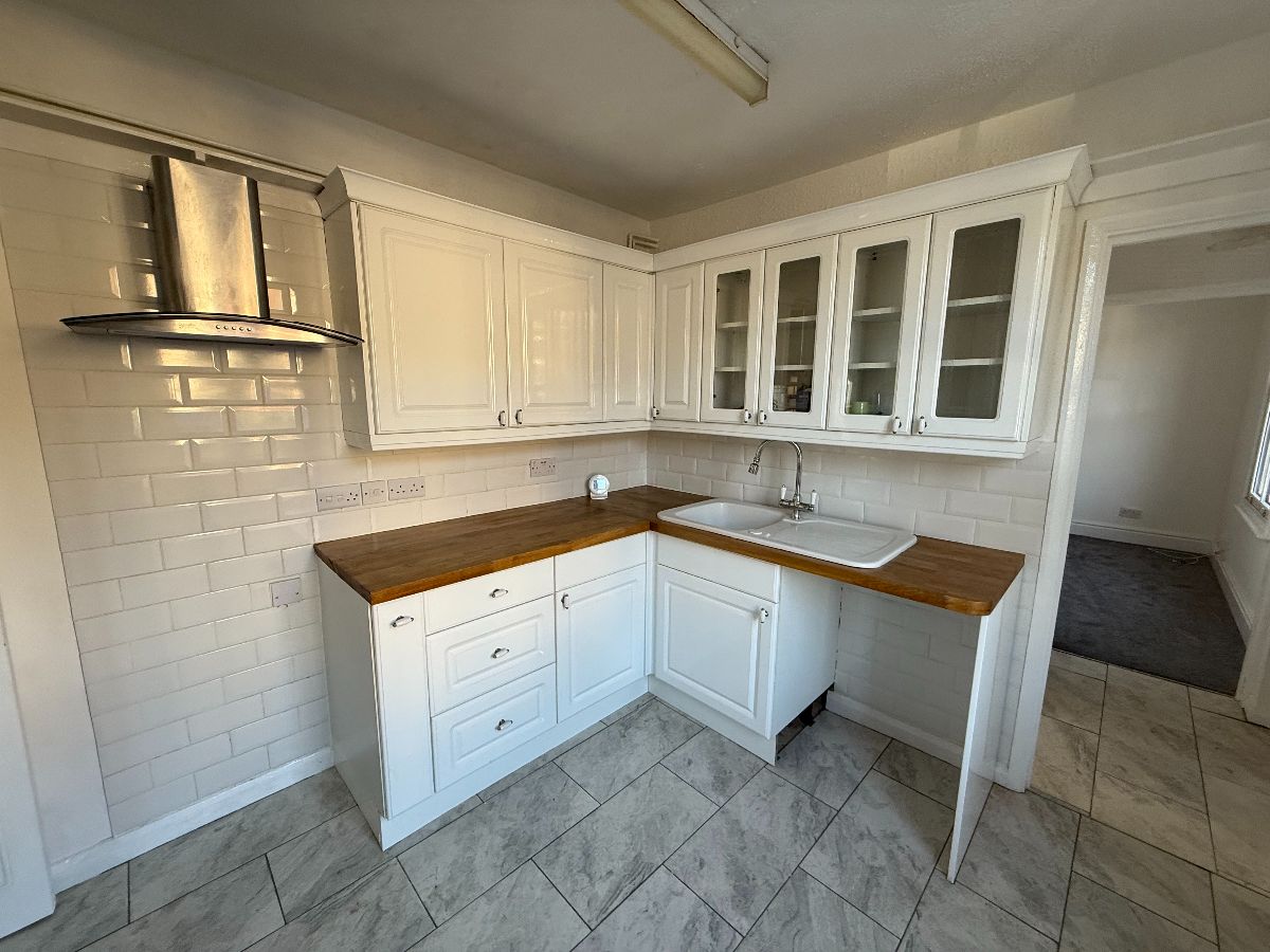 Kitchen: Fitted with a white kitchen, double walk in cupboard, range of units and ceramic sink.