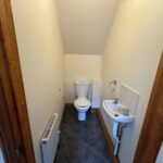 Cloakroom: With WC and hand basin, tiled floor