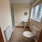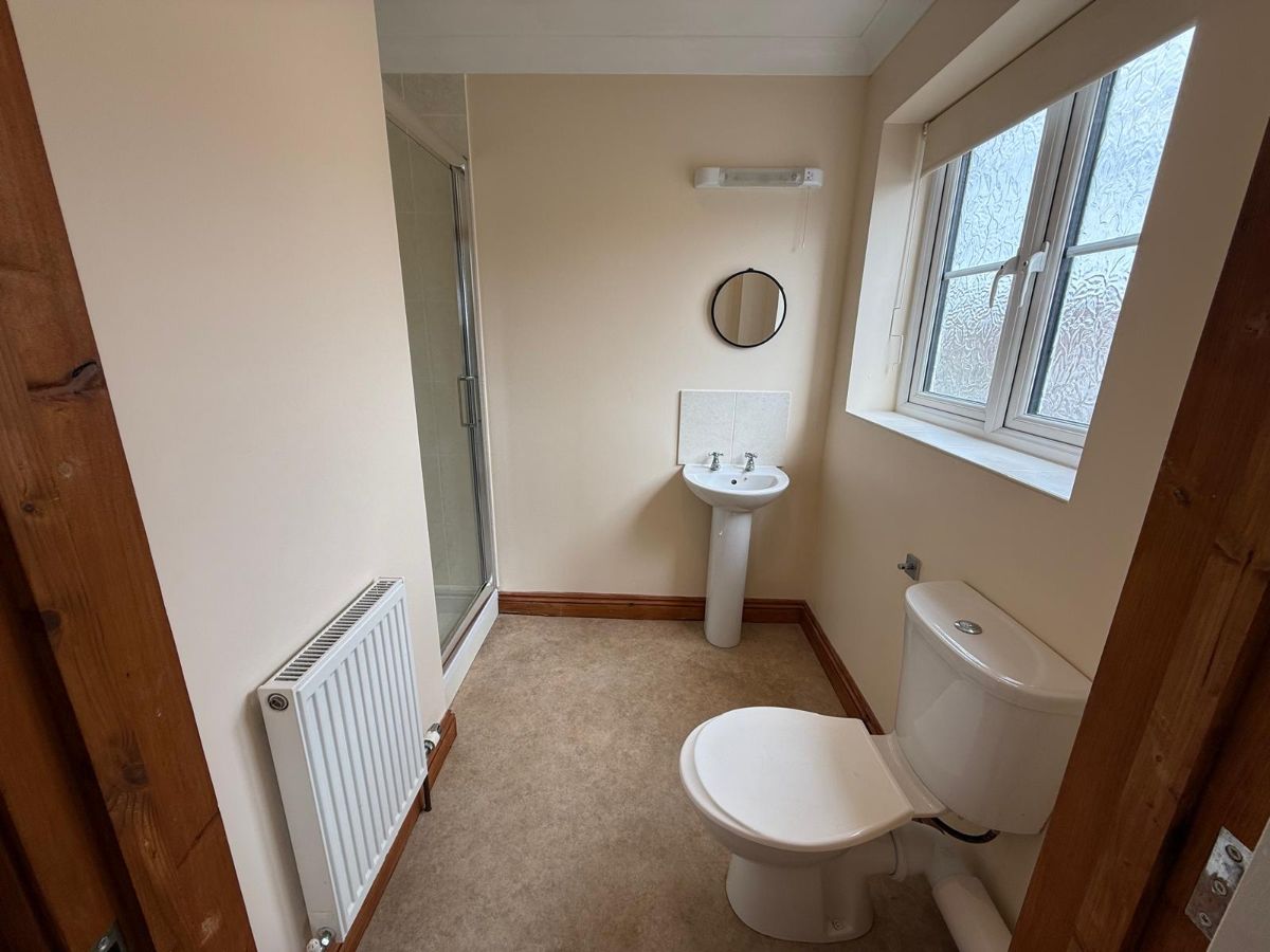 En-Suite Shower Room, vinyl flooring, WC and hand basin, separate fully tiled shower cubicle
