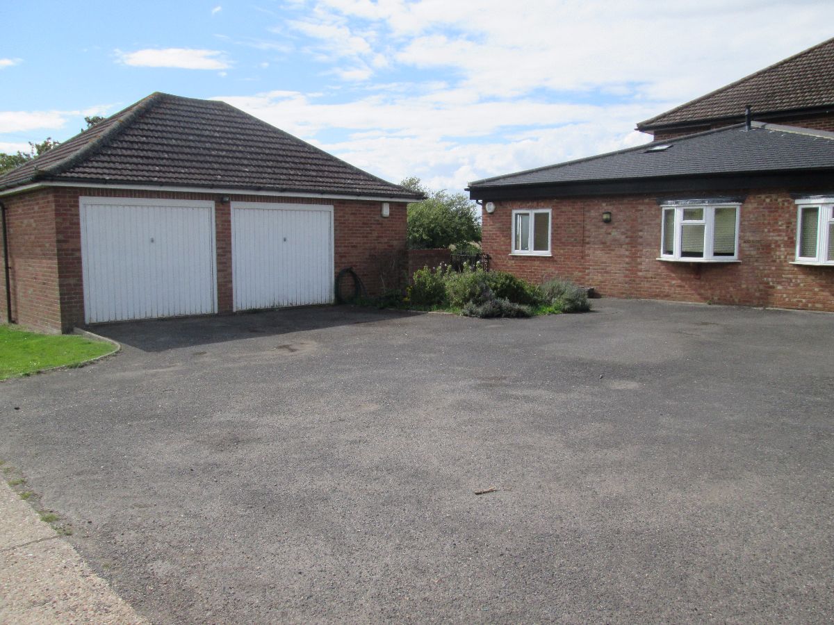 Outside: The property is approached via a driveway leading to a detached Double Garage with power and light. There is a substantial lawned front garden with privacy hedges and gates either side lead to the rear Garden.